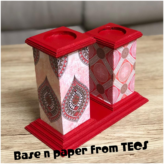 Step 2: Then I applied blue chalk paint to cover my base. After applying the chalk paint, I decoupage "My Naughty Prince" paper pack. The paper pack is just amazing. I am sure you will fall in love with it as I did.